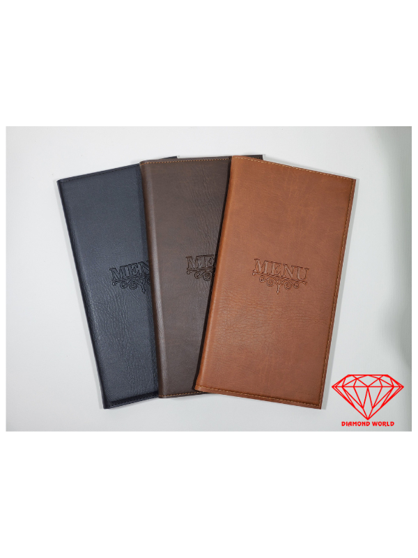 Menu gáy lò xo DW002 có sẵn gồm 3 màu: Đen, Nâu đậm và Nâu nhạt như ảnh. Ngoài ra còn có đa dạng về kích thước gồm: A4, A5 hay 17*31cm để đảm bảo đủ kích thước cho bạn lựa chọn.